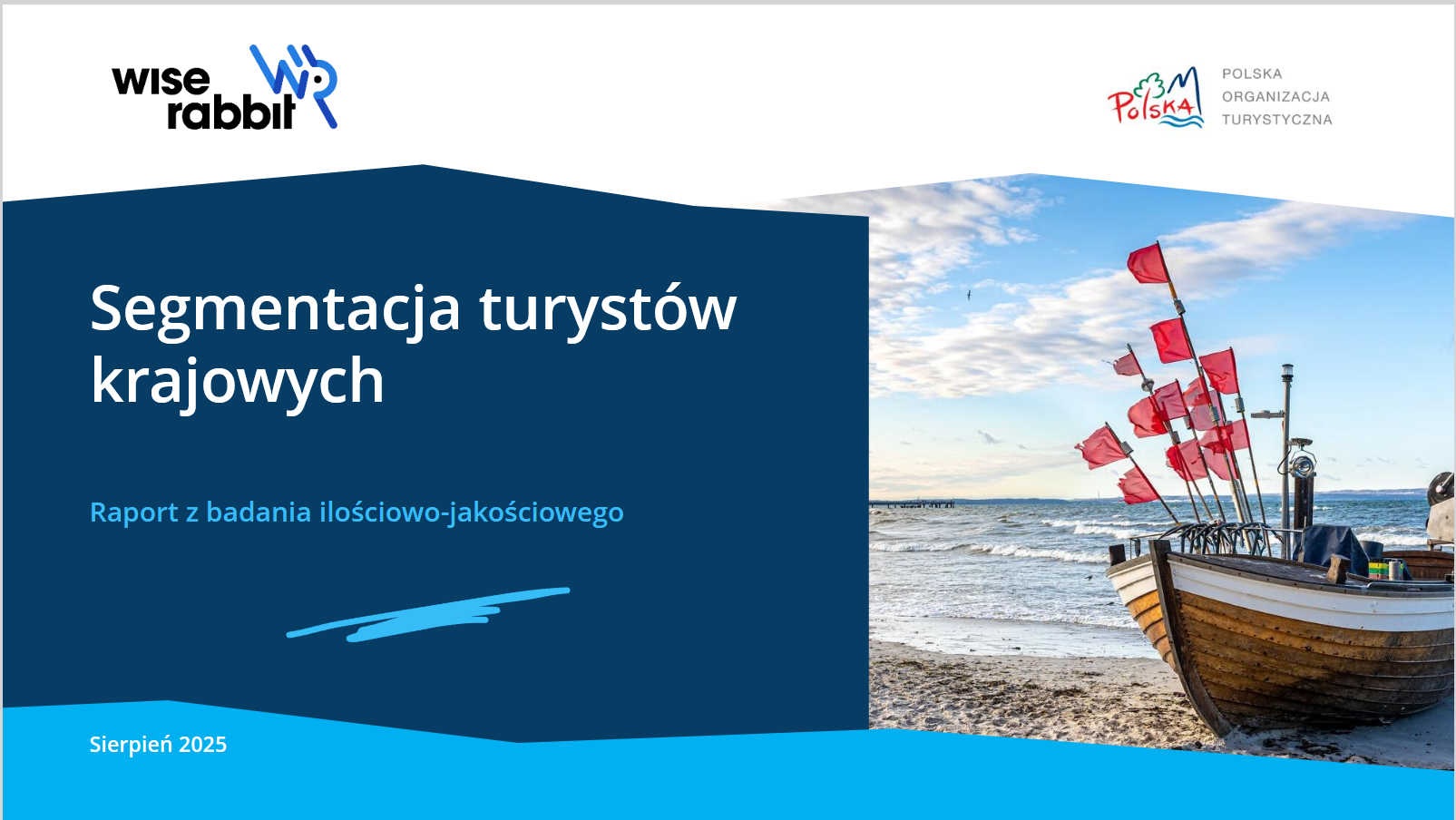 Raport z badania SEGEMENTACJA TURYSTÓW KRAJOWYCH, które na zlecenie Polskiej Organizacji Turystycznej przeprowadziła agencja badawcza Wise Rabbit. Badanie miało charakter ilościowo- jakościowy, wzięły w nim udział osoby reprezentujące grupę docelową definiowaną jako „turysta krajowy” w wieku 18-60 lat. Pierwsza część badania: ilościowa (metodą CAWI) na próbie n = 1000 posłużyła do wyłonienia najbardziej dystynktywnych i najliczniejszych segmentów turystów krajowych na podstawie danych i opinii dotyczących zachowań i postaw związanych z wyjazdami krajowymi. Wyłonionych zostało 5 kluczowych segmentów (których podstawową charakterystykę znajdziecie Państwo w raporcie na slajdach nr. 12 – 17) 1. Wygoda i atrakcje 2. Rodzinne wakacje 3. Radość w podróży 4. Regeneracja w naturze 5. Ciekawość i odkrywanie Część jakościowa - Zogniskowane Wywiady Grupowe (n=10) z przedstawicielami w. w. segmentów miała na celu uzyskanie jak najbardziej pogłębionej wiedzy o ich zwyczajach, aspiracjach i potrzebach, które realizują podczas podróży turystycznych po kraju. Raport z badania Segmentacja Turystów Krajowych – to kompendium wiedzy o turystach krajowych „w pigułce”. Dostarczy Państwu informacji o najważniejszych aspektach związanych z procesem decyzyjnym odnośnie wyboru kierunku wyjazdu, jego przebiegu, jak i też opis kluczowych elementów mających wpływ na satysfakcję z podróży.