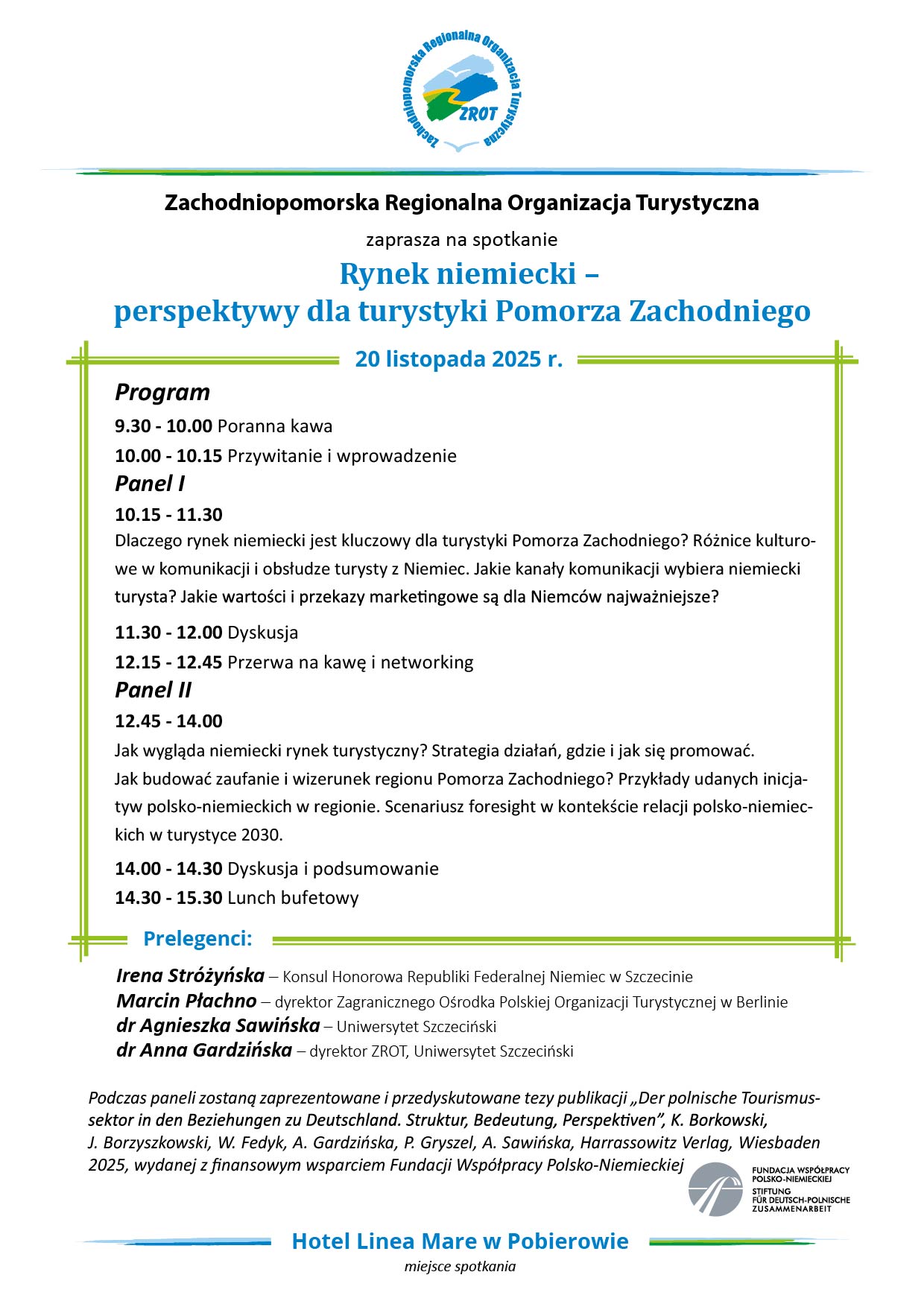 W gronie prelegentów m.in. Irena Stróżyńska (Konsul Honorowa RFN w Szczecinie) oraz Marcin Płachno (Dyrektor Zagranicznego Ośrodka POT w Berlinie).
